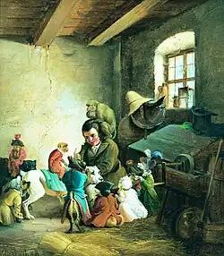 - 1836: Ein Savojardenjunge mit Hunden. 19 × 17 Zoll, KV München.