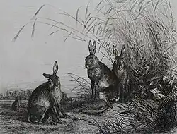 Das ungezähmte, autonomer als Haus- und Nutztiere angesehene Wild und die sich etablierende Kunstströmung des Realismus forderten eine sachlichere Wiedergabe in möglichst naturnaher Umgebung, wie er sie mit zahlreichen Ölgemälden zum Thema Wild und Jäger oder mit seiner leichthändigen Radierung „Hasen“ vorlegte. Sie bildeten den Höhepunkt seiner Künstlerlaufbahn und seiner Verkaufserfolge. Zu seinem Renommee trug auch bei, dass er 1841 ein Jagdhaus im Revier Forstenried bei München unentgeltlich mit insgesamt 8 Wandgemälden mit Jagdszenen ausschmückte.[13] Die Initiative dazu war vom königlichen Revierförster und Parkmeister Max von Schilcher ausgegangen, der auch Mitglied des Münchner Kunstvereins war.[14]