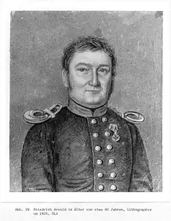 1811 wurde Friedrich Arnold Professor für Baukunst an der Universität Freiburg und ab 1816 Architekt beim badischen Kriegsministerium. 1825 wurde er badischer Militärdirektor. Nach Entwürfen von Friedrich Arnold wurden unter anderem Kasernen und Hospitäler in Baden und die Salinen in Rappenau und Dürrheim[1] gebaut.