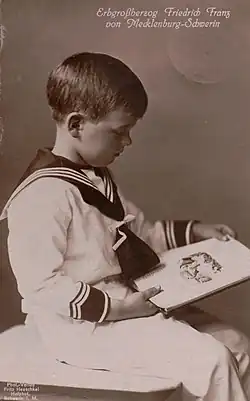 Friedrich Franz Herzog zu Mecklenburg [-Schwerin] (* 22. April 1910 in Schwerin; † 31. Juli 2001 in Hamburg; vollständiger Name: Friedrich Franz Michael Wilhelm Nikolaus Franz-Joseph Ernst August Hans Herzog zu Mecklenburg) war von seiner Geburt bis zum November 1918 Erbgroßherzog von Mecklenburg in Mecklenburg-Schwerin und von 1945 bis zu seinem Tod das Oberhaupt des Hauses Mecklenburg-Schwerin.[1][2] Auch noch nach 1918 wurde er im allgemeinen Sprachgebrauch als Erbgroßherzog tituliert, obwohl sein gesetzlicher Name seither Herzog zu Mecklenburg lautete.[Anmerkung 1]