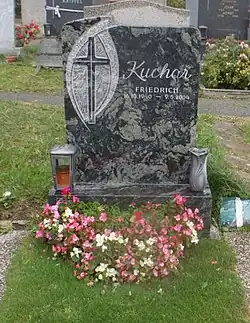 Friedrich Kuchar verstarb am 9. Mai 2004 in Wien und wurde am 19. Mai am Jedleseer Friedhof (Gr. 23, R. 5, Nr. 30) begraben.