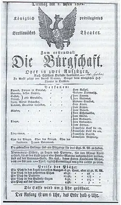- Die Bürgschaft (Eduard Heinrich Gehe), Ernste Oper, Theater Breslau 1822