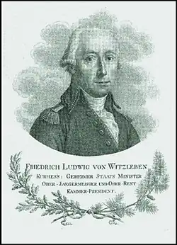 Nach der Besatzungszeit wurde Friedrich Ludwig von Witzleben im wiedererrichteten Kurfürstentum Hessen in seinem früheren Posten als Oberjägermeister und Chef des Forstwesens wieder eingesetzt und er wurde zum Geheimen Staatsminister ernannt. Von 1821 bis 1826 war er kurhessischer Finanzminister. Von 1823 bis 1830 leitete er das Gesamtstaatsministerium.