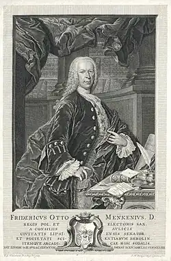 - Joh. Burch. Et Frid. Ott. Menckeniorum Bibliotheca Virorum Militia Aeque AC Scriptis Illustrium. Leipzig 1734 gemeinsam mit Johann Burchard Mencke