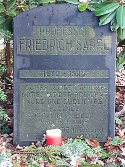 - ↑ Malte Fuhrmann: Friedrich Sarre, der zeitgenössische ‚Orient‘ und der Erste Weltkrieg. In: Julia Gonnella, Jens Kröger (Hrsg.): Wie die islamische Kunst nach Berlin kam. Der Sammler und Museumsdirektor Friedrich Sarre (1865–1945). Berlin 2015, S. 57–58.