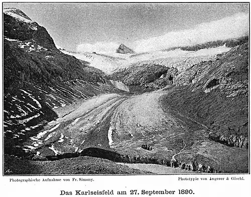Friedrich Simony ist durch die Erschließung des Dachsteingebietes bekannt. 1840 begann Simony erstmals mit den Forschungen auf dem Dachsteinplateau und begann mit der Erkundung der Geomorphologie und der acht Gletscher des Dachsteingebirges. 1847 gelang ihm die erste Winterbesteigung.