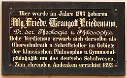 Gedenktafel für Friedrich Traugott Friedemann an seinem Geburtshaus in Stolpen