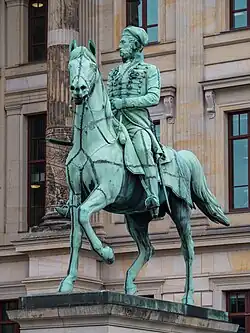 In der Folge der siegreich geführten Napoleonischen Kriege und des dadurch wachsenden Nationalgefühls wurden in Braunschweig, wie auch in zahlreichen anderen deutschen Städten, Straßen und Plätze nach Schlachten und Militärs der Zeit benannt. In Braunschweig waren es die nach dem Schwarzen Herzog benannte Friedrich-Wilhelm-Straße und der sich daran anschließende Friedrich-Wilhelm-Platz.[19] Des Weiteren wurden Straßen und Plätze nach Angehörigen der Braunschweigischen Truppenverbände benannt, nämlich nach Georg Ludwig Korfes, Johann Elias Olfermann und Friedrich Ludwig von Wachholtz, nach den Braunschweiger Husaren und nach Waterloo.[20] Die Marienstraße wurde nach Marie von Baden, Friedrich Wilhelms bereits 1808 im Kindbett verstorbener Frau benannt, ebenso das Braunschweiger Marienstift.[21] Olfermann, der nach dem Tod Friedrich Wilhelms das Kommando über die braunschweigischen Verbände in der Schlacht bei Waterloo übernahm, nimmt insofern eine Sonderstellung ein, als nach ihm nicht nur eine Straße und ein Platz im östlichen Ringgebiet benannt wurden, sondern ihm 1832 auch ein Denkmal auf dem nahe gelegenen Nußberg errichtet wurde. Noch 1955 wurde eine Passage zwischen Friedrich-Wilhelm-Straße und Bankplatz „Friedrich-Wilhelm-Passage“ getauft.[22]