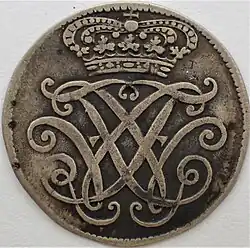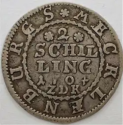 2 Schillingemünze von 1704 mit Monogramm Friedrich Wilhelms