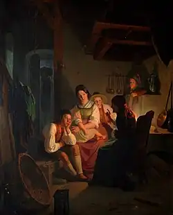 - Die eifersüchtige Horcherin (1849), Lithografie von Andreas Fleischmann