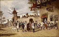 Er malte hauptsächlich Landschafts- und Genrebilder, oft mit Pferden.