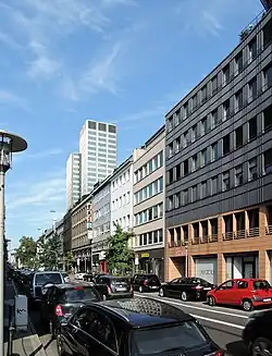 | Friedrichstraße mit Blick nach Norden zum Graf-Adolf-Platz und LVA-Hochhaus | |