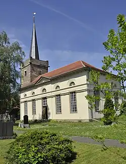 Die St.-Laurentius-Kirche (Lage→) wurde als Wehrkirche 1447 erbaut. Aus dieser Zeit stammt der Kirchturm, der in die Dorfbefestigung einbezogen war.