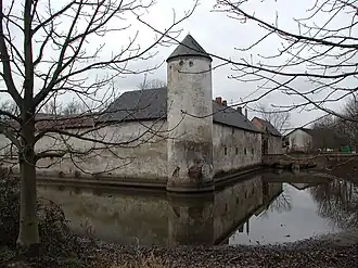 Das von Wassergräben umgebene Schultheißenhaus wurde in der Bevölkerung seit dem 20. Jahrhundert als „Krahesburg“ bezeichnet. Das 1727 im Barockstil errichtete Haus des Schultheißen Saur verkaufte dieser im Jahr 1763 an Schultheiß Krahe.[25][37]