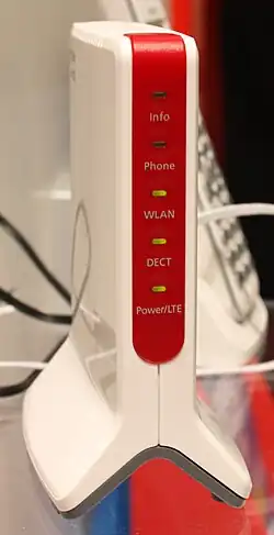 | Fritz!Box 6820 LTE | LTE- und GSM-Modem (800/2600 MHz sowie 3G (UMTS) und 2G), Router (einmal Gigabit LAN und WLAN N), ähnlich wie 6810 LTE aber mit UMTS/HSPA+ und Gigabit-LAN |