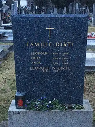 - ↑ Die Bestatteten im Grab von Fritz Dirtl ( des vom 13. April 2016 im Internet Archive) Info: Der Archivlink wurde automatisch eingesetzt und noch nicht geprüft. Bitte prüfe Original- und Archivlink gemäß Anleitung und entferne dann diesen Hinweis.