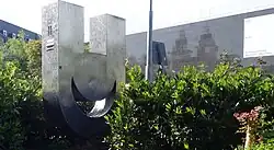 Fritz Schwegler, Einige späte Bilder blieben in der Luft hängen und wurden nachgebaut (EN 6114), 1990, 220 × 104 × 30 cm, 210 × 140 × 103 cm, Beton, Farbe. Standort: im Tal (Skulpturenpark) zwischen Hasselbach und Werkhausen