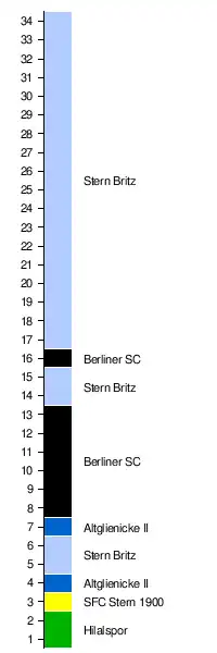 | 14. | Hilalspor Berlin | 34 | 13 | 5 | 16 | 61:79 | −18 | 44 |