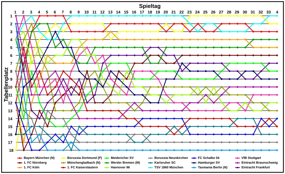 Dagegen etablierten sich die beiden anderen Aufsteiger, der FC Bayern München und Borussia Mönchengladbach, in den nächsten Jahren als Spitzenmannschaften in der Liga.