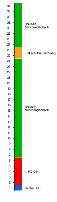 | 1. | Borussia Mönchengladbach | 2:0 | 1:1 | 1:3 | 3:1 | 0:0 | 1:0 | 1:1 | 1:1 | 2:1 | 3:1 | 3:1 | 0:0 | 3:0 | 4:2 | 5:1 | 3:0 | 6:0 | |