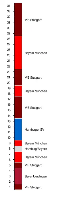 | 1. | VfB Stuttgart | 0:1 | 0:0 | 1:0 | 3:0 | 3:2 | 2:2 | 1:0 | 3:0 | 4:0 | 0:0 | 5:1 | 3:1 | 6:0 | 4:2 | 2:2 | 5:1 | 7:0 | |