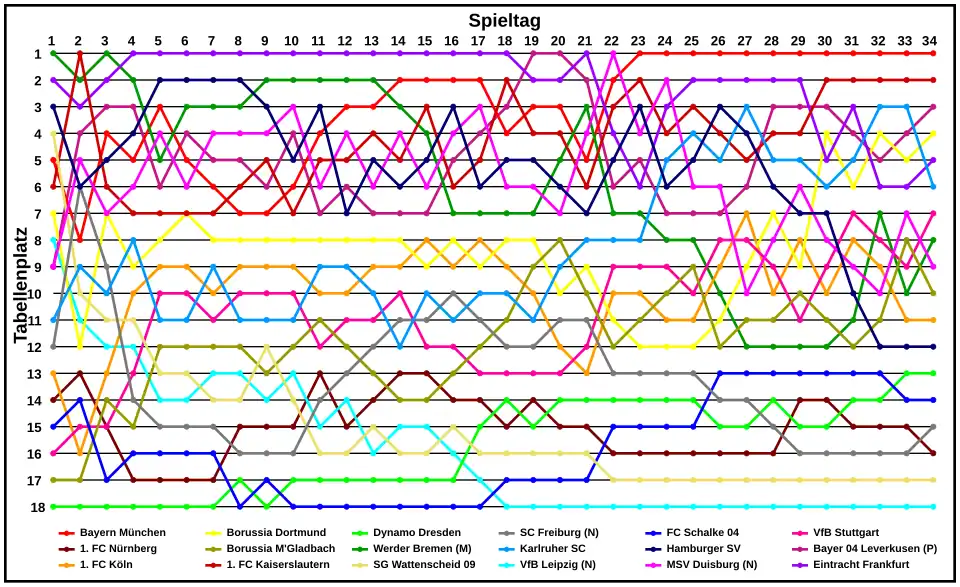 | 4. | Borussia Dortmund | 1:1 | 2:1 | 1:0 | 2:0 | 2:1 | 1:2 | 3:2 | 2:1 | 3:0 | 2:1 | 2:1 | 4:0 | 1:1 | 3:2 | 4:1 | 2:0 | 0:1 | |