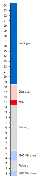 | 11. | SC Freiburg | 0:1 | 3:1 | 1:2 | 0:0 | 0:3 | 2:1 | 0:3 | 1:0 | 0:1 | 2:1 | 2:0 | 1:1 | 2:1 | 0:2 | 0:0 | 2:0 | 1:1 | |