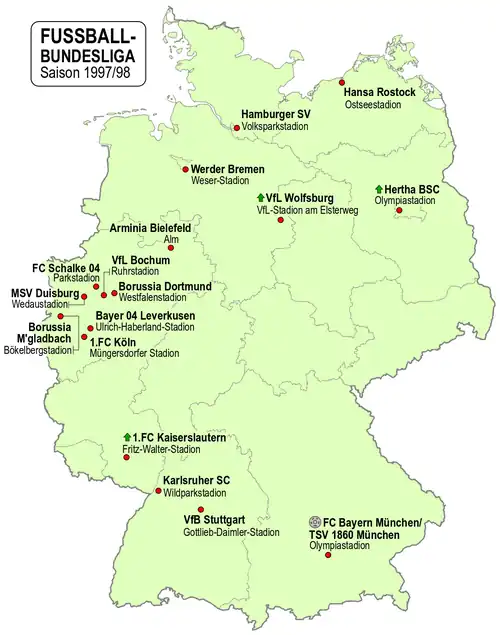 | (N) | Aufsteiger aus der 2. Bundesliga 1996/97 |