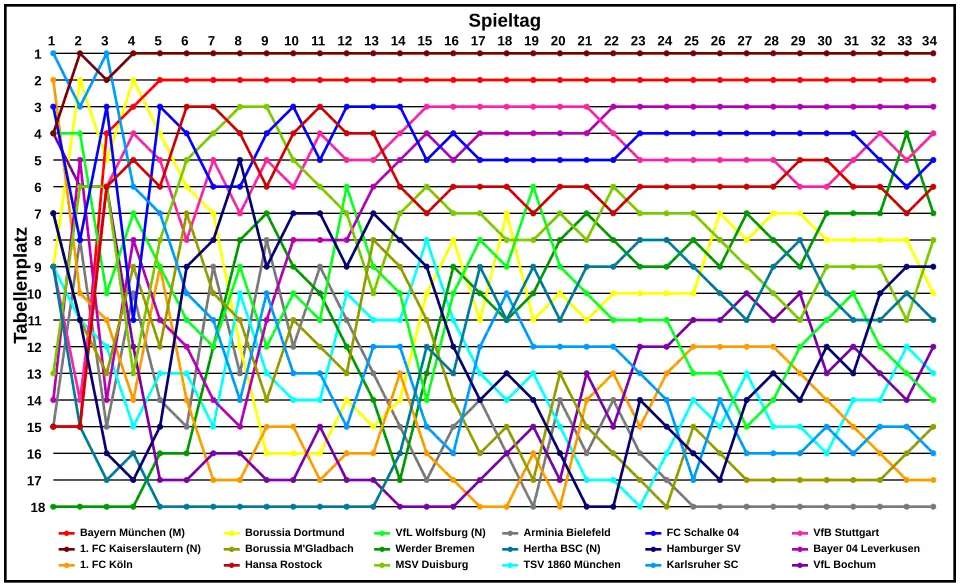 | 2. | FC Bayern München | 0:1 | 2:1 | 3:3 | 1:1 | 2:0 | 2:0 | 3:0 | 3:0 | 4:0 | 3:0 | 0:0 | 3:1 | 5:2 | 3:2 | 1:1 | 0:2 | 1:0 | |