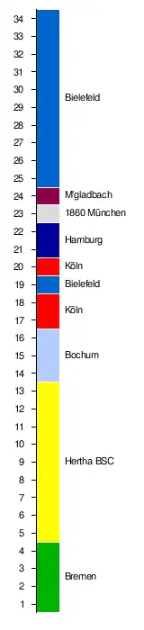 | 18. | Arminia Bielefeld | 2:2 | 4:4 | 2:1 | 2:1 | 1:1 | 0:1 | 3:0 | 3:3 | 0:3 | 3:1 | 1:3 | 0:2 | 1:1 | 0:1 | 3:1 | 2:1 | 2:1 | |