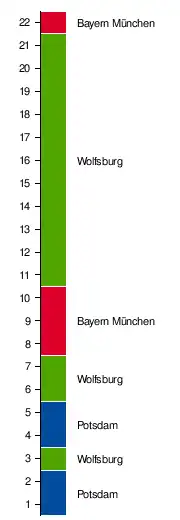 | VfL Wolfsburg | 2:0 | 2:1 | 0:0 | 0:0 | 4:0 | 5:0 | 3:0 | 3:0 | 7:0 | 10:0 | 2:0 | |