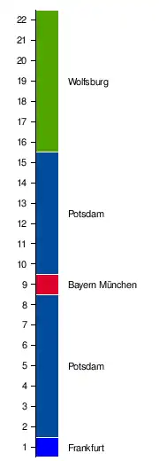 | 1. FFC Turbine Potsdam | 0:4 | 1:3 | 3:0 | 0:1 | 2:0 | 1:0 | 1:0 | 1:0 | 1:0 | 8:0 | 5:0 | |