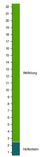 | 3. | TSG 1899 Hoffenheim | 22 | 16 | 1 | 5 | 67:24 | +43 | 49 |