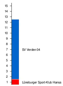 | 1. | FC Verden 04 | 16 | 13 | 3 | 0 | 55:8 | 47 | 42 | |