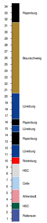 | HSC Hannover | 0:1 | 0:4 | 3:2 | 2:1 | 2:1 | 0:1 | 1:4 | 3:2 | 3:1 | 3:3 | 0:5 | 1:4 | 1:1 | 0:2 | 2:1 | 0:3 | 2:1 | |||