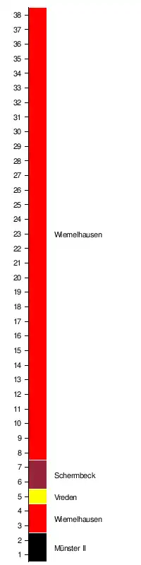 | Preußen Münster II | 1:1 | 3:2 | 2:3 | 3:2 | 2:1 | 1:2 | 1:1 | 2:3 | 2:2 | 5:0 | 5:0 | 1:0 | 8:0 4 | 0:3 | 2:2 | 3:3 | 0:1 | 0:3 | ||||