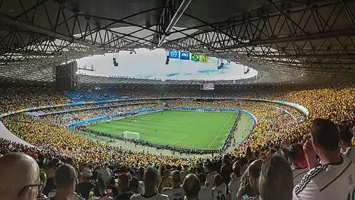Das Fußball-WM-Halbfinale zwischen Brasilien und Deutschland am 8. Juli 2014 war die erste der beiden Halbfinalpartien der Fußball-Weltmeisterschaft 2014 in Brasilien. Der mit fünf Titeln amtierende Rekordweltmeister Brasilien verlor das Spiel gegen den damals dreifachen Titelträger und späteren Turniersieger Deutschland mit 1:7. Als höchste Niederlage im Halbfinale einer Fußballweltmeisterschaft erhielt es in Brasilien den Beinamen Mineiraço,[1][2] sinngemäß etwa „Schock von Mineirão“.[3] Diese Benennung ist vom Kurznamen „Mineirão“ des Stadions Estádio Governador Magalhães Pinto in Belo Horizonte abgeleitet und erinnert an den Beinamen Maracanaço für die Niederlage Brasiliens gegen Uruguay bei der Fußball-Weltmeisterschaft 1950 im Maracanã.[4]