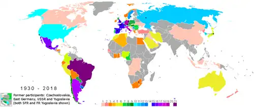 Derzeit sind in der Liste 81 Landesverbände verzeichnet, von denen 80 an einer WM-Endrunde teilnahmen.