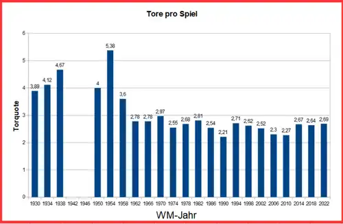 Der Schnitt von 2,2 Toren pro Spiel nach dem Achtelfinale lag knapp unter dem Negativ-Rekord von 2,21 Toren pro Spiel der WM 1990. Durch das Viertelfinale stieg der Schnitt auf 2,22 und durch die Halbfinalspiele auf 2,24 Tore pro Spiel. Durch die Finalspiele, insbesondere das Spiel um Platz 3 in dem 5 Tore fielen, wurde der Schnitt auf 2,27 angehoben. Er ist damit der zweitschlechteste in der WM-Geschichte.Torquoten bei den WM-Turnieren