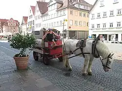 In der Innenstadt von Schwäbisch Gmünd werden seit 1992 die städtischen Pflanzen von einem Pferdefuhrwerk mit Wassertank bewässert.[2]