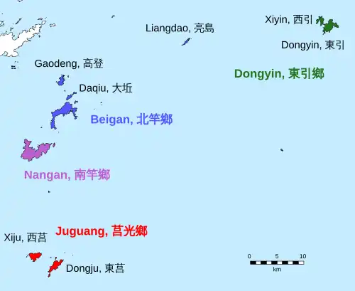 Der unter Kontrolle der Republik China auf Taiwan stehende Anteil der Provinz Fujian besteht aus zwei Landkreisen: Kinmen und Lienchiang. Die Gesamtfläche der Inseln beträgt 182,66 km². Beide Inselgruppen zusammen haben ungefähr 143.000 Einwohner (Stand 2024).
