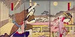 Toyohara Kunichika, Der Kaufmann Jirōzaemon und die schöne Yatsuhashi, 1888 (publiziert durch Fukuda Kumajirō)