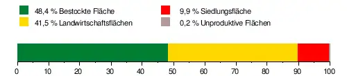 Das Einzugsgebiet besteht zu 48,4 % aus bestockter Fläche, zu 41,5 % aus Landwirtschaftsfläche, zu 9,9 % aus Siedlungsfläche und zu 0,2 % aus unproduktiven Flächen.
