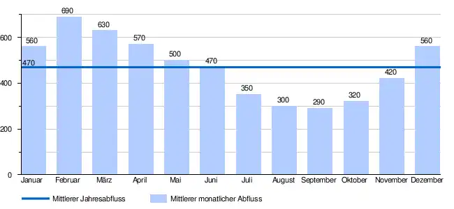- ↑ Martin Pfaundler, Rolf Weingartner, Robert Diezig: „Versteckt hinter den Mittelwerten“ – die Variabilität des Abflussregimes. In: Hydrologie und Wasserbewirtschaftung (HyWa). Jg. 50, Heft 3, 2006, S. 116–123, hier Tabelle auf S. 119 (Download [PDF; 3,2 MB; abgerufen am 31. August 2020]). Abrufbar unter Gesamtes HyWa Heft 3, 2006..