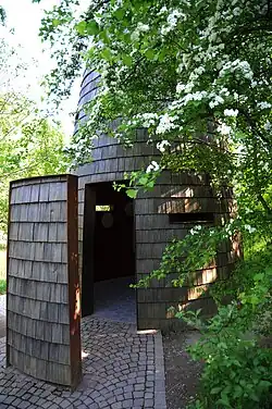 - Ein großer begehbarer Bienenkorb beinhaltet einen Bienenstock; durch Glasscheiben kann man den Bienen bei der Arbeit zusehen.