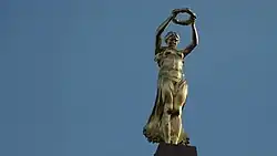 Die Skulptur ist eine vergoldete Bronzestatue. Antikes Vorbild könnte die 1875 von deutschen Archäologen ausgegrabene antike Göttin Nike des Paionios sein, die heute im Archäologischen Museum Olympia zu sehen ist.[2] Im Gegensatz zur 1863 von den Franzosen ausgegrabenen Nike von Samothrake und deren künstlerischen Variationen in Form zahlreicher Siegessäulen mit Siegesengeln, stellt Claus Citos die Freiheitsgöttin Libertas dar, welche keine Flügel hat.