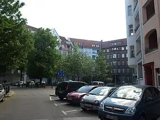 Das überwiegend aus Wohnhäusern bestehende Ensemble mit großen Balkonen wurde von 1909 bis 1913 im Jugendstil errichtet. Dieses zeigte sich besonders an den Fenstern der Hausflure und an der Ausprägung des Fassadenschmucks. Die Bewohner schwärmten, dass „es die ersten Wohnungen im Viertel mit Innentoiletten waren, und die Straße voller Geschäfte war“.[1] Den Abschluss an der Stirnseite bildet das 1926 bis 1928 von Otto Werner gebaute Elias-Gemeindehaus. Die Fassaden seines Innenhofs sind mit Weinreben bewachsen und mit vom Expressionismus beeinflussten Ornamenten verziert. Sein Kuppelsaal war ursprünglich als Theater- und Konzertsaal entworfen.