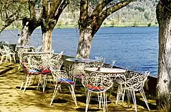 Hotelterrasse des alten Gölcük Princess-Hotels in Gölcük mit Blick auf den Gölcük-See Ende der 1980er Jahre.
