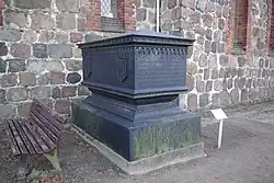 Auf dem Kirchhof um die Kirche herum befindet sich im Norden der Kirche ein Kenotaph für den Rittmeister Franz Johann Ludwig Alberthal (1778–1813). Er fiel in der Schlacht bei Dennewitz. Der Entwurf für das Kenotaph stammt von Karl Friedrich Schinkel. Das Jahr der Aufstellung ist unbekannt, es soll in der Zeit von 1820 bis 1860 aufgestellt worden sein. Auf der Frontplatte befindet sich eine Widmung, auf den Seiten Wappen mit eisernem Kreuz.