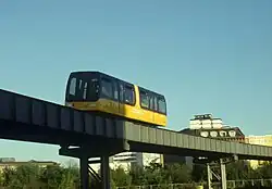 1983 erhielt Heidelberg, mit Beteiligung der AEG, den Auftrag für den Bau der Magnetbahn-Versuchsstrecke in Berlin.[7] Anlässlich der 750-Jahr-Feier Berlins wurde der Referenzbetrieb mit der Magnetbahn Berlin am 1. Mai 1987 eröffnet. Es wurden vier M-Bahn-Fahrzeuge stufenweise auf der Demonstrationsanlage[8] Berlin im täglichen Fahrgastverkehr eingesetzt. Fahrzeuge und Bahnhöfe (Kemperplatz, Bernburger Straße, Gleisdreieck) wurden personalfrei auf der vollautomatisierten Anlage betrieben. Die Fahrzeuge fuhren von 1987 bis 1991 im Demonstrations- und Verkehrsbetrieb.